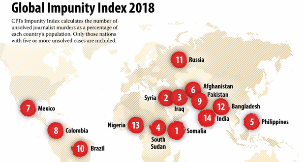 Journalistes tués: «Dans 9 cas sur 10, les meurtriers restent impunis», 14 pays épinglés