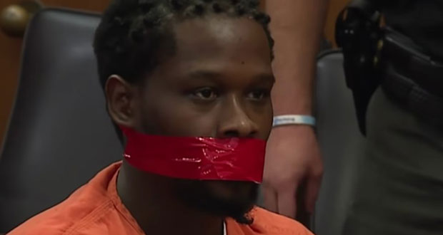 Un accusé bâillonné avec du scotch en plein procès