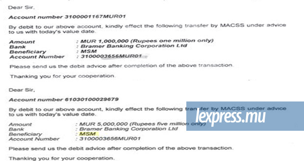 Documents publiés par un internaute: des transferts de Rs 19 millions de la BAI au MSM…