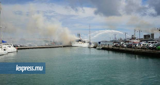 Au Caudan Waterfront: un bateau en proie aux flammes