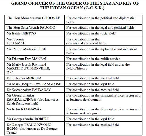 La liste des décorés à l’occasion des 46 ans de l’Indépendance.