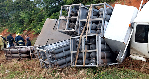 Valton: un camion de cylindres de gaz finit sur le bas-côté de l'autoroute les roues en l'air