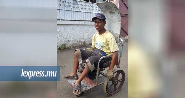 Joël et son fauteuil: ses pieds ne marchent pas mais ses mains si