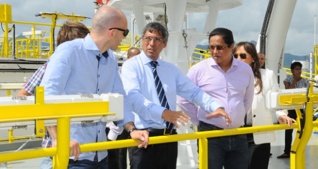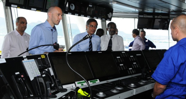 Le ministre des Finances avait été convié à une visite de ce bâtiment dernier cri le jour de son départ par WD Associates Ltd, l’agence portuaire et de bunkering qui a pris soin du Bolette Dolphin lors de son séjour à Maurice. Durant cette visite, la délégation du ministère des Finances et la presse ont pu apprécier la modernité de ce navire flambant neuf.