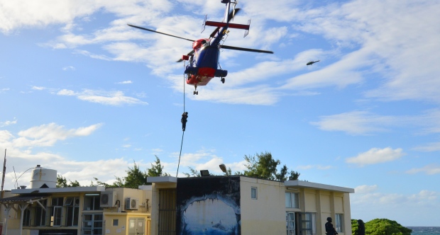 Des terroristes débarquent à l’hôtel Le Chaland, prennent en otage un groupe de touristes. Mandés sur les lieux, tireurs d’élite, officiers de la Special Mobile Force, du Groupe d’intervention de la police mauricienne, du Scene of Crime Office se déploient pour maîtriser les assaillants… C’était là le scénario choisi pour un exercice de simulation de libération d’otages, ce samedi 12 juillet. Le but: tester le niveau de préparation des différentes unités des forces de l’ordre.