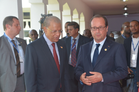 Navin Ramgoolam en compagnie du président français François Hollande aux Comores.