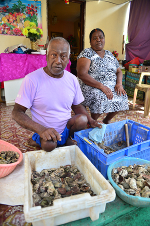La mer s’est tellement appauvrie, dit-il, que les huîtres d’argent ont quasiment disparu. «On n’en trouve que deux types d’huîtres sauvages, les grosses et les moyennes ». Parfois, il se fait accompagner de sa femme Kemawtee et de leurs deux filles pour les pêcher.
