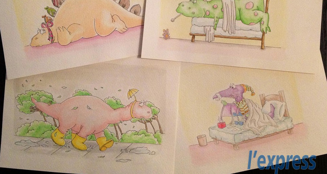 Quid de l’idée de faire un livre pour enfants mettant en scène des dinosaures malades? Celle-ci est venue il y a six ans. Le professeur de musique, qui carbure aux arts scéniques et musicaux, se gave de poèmes de son enfance, rédigés par Shel Silverstein, auteur de livres pour enfants d’origine américaine. C’est de là que lui vient l’inspiration, raconte-t-il: «Des vers avec un brontosaure souffrant de bronchite défilaient dans mon esprit. Je me suis mis à chercher d’autres allitérations avec des dinosaures malades. Puis, je me suis dit que cela ferait un bel ouvrage pour enfants, à condition d’avoir les bonnes illustrations.» Il pense immédiatement à sa collègue Priscilla Li Kam Cheung, qui est d’emblée enthousiasmée par cette idée. Dessinant d’abord les illustrations, elle les partage avec l’auteur pour habiller les personnages dans une belle symbiose mariant texte et image. Les mois s’écoulent et les efforts de la dessinatrice portent leurs fruits. L’artiste donne des couleurs à ses créations au pinceau.