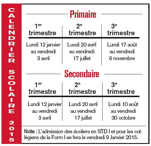 L’année scolaire n’est pas encore terminée qu’on pense déjà à la prochaine… Le calendrier scolaire 2015 pour le primaire et le secondaire a en effet été validé hier, vendredi 26 septembre, par le Conseil des ministres. Le voici.