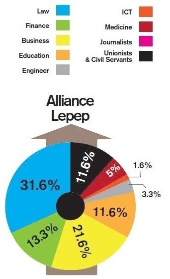 In short, the professional profiles of the bloc’s candidates represent not a departure, but continuity from earlier elections, with some professions such as law, education and business being prominently represented. In terms of representation, professions such as ICT and engineering are the worst represented, with only one and two candidates coming from those respective backgrounds.