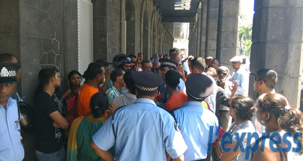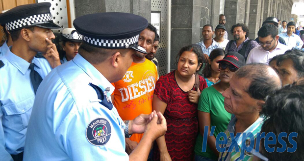 12h58 : Ambiance tendue devant le PMO, à Port-Louis. Une cinquantaine de personnes réclament des explications et veulent rencontrer le Premier ministre. Certains ont même voulu bloquer la route. Une dizaine de policiers sont sur place.