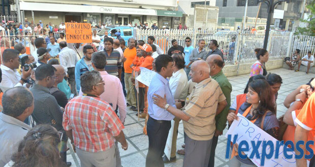 11 heures : Les partisans Orange tentent d’accéder à la salle d’audience. «Pravind innocent», «Pravind nou futur PM», scandent-ils.