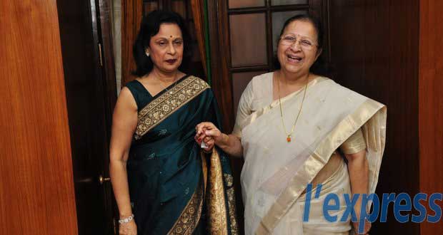 > Maya Hanoomanjee en compagnie de son homologue indienne Sumitra Mahajan.