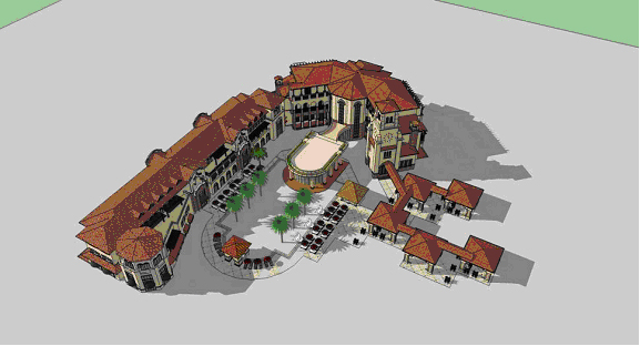 Impression d’artiste du Conventional Hotel et de la Yatch Villa.