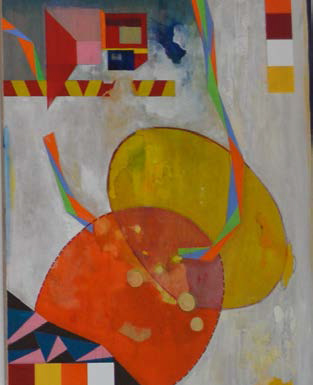 Passé la porte d’entrée, c’est un tableau «géant» qui nous accueille. Le plasticien y occupe non seulement l’espace mais joue aussi avec les formes du tableau.