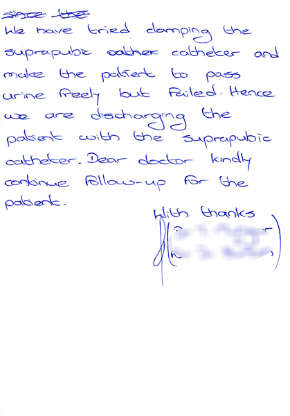 Bien-sûr qu’elle était complétée du point de vue de la chirurgie. J’ai placé une sonde à travers l’urètre, comme il était convenu. Je concède que ça n’a pas marché. Le résultat n’était pas probant. Ce sont des choses qui arrivent. Il faut alors voir d’où vient le problème et essayer d’y remédier. Ça ne veut pas dire que la chirurgie était incomplète. Il y a d’autres cas où il a fallu s’y prendre à deux ou trois fois. </p>