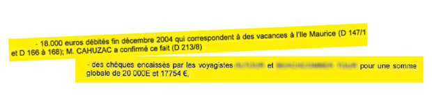 Non seulement la vieille dame ignorait que son compte était ainsi alimenté, mais sa carte et son chéquier servaient à financer les dépenses de la famille, notamment les vacances, comme en témoigne les «paiements encaissés» par deux voyagistes.