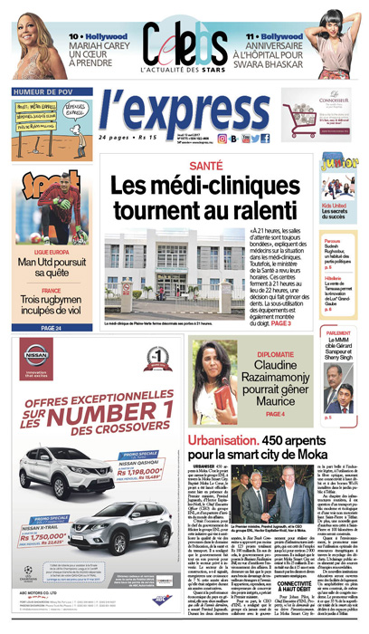 En une: les médi-cliniques tournent au ralenti. Autres titres: Claudine Razaimamonjy pourrait gêner Maurice et 450 arpents pour la smart city de Moka.