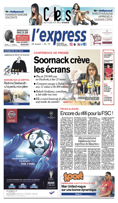 En une: Nandanee Soonack crève les écrans lors de sa conférence de presse. Autre titre: encore du rififi pour la FSC.