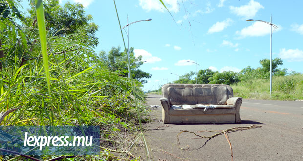 Suivant cet échange, l’express est allé faire un tour à Jin Fei vendredi. Il n’a pas fallu chercher longtemps et bien loin pour trouver ces fameux déchets. Même si à certains endroits, la végétation commence à recouvrir le béton et les gravats. Une bonne partie de ces ordures portent aussi des traces d’incendie. L’accumulation laisse clairement comprendre que cela fait des mois que ces détritus ont été laissés là, parfois à même la route.