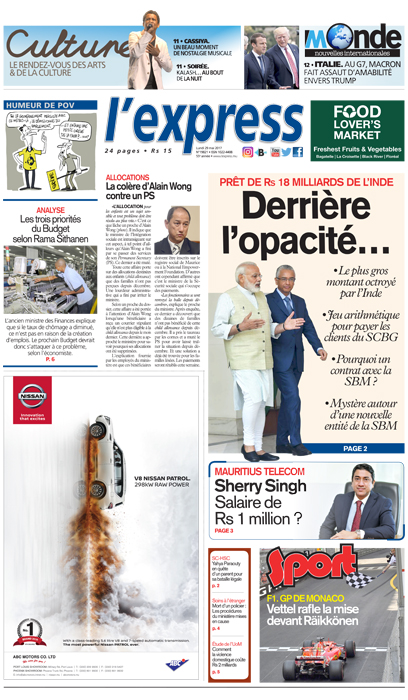 En une: les interrogations qui fusent concernant le prêt de Rs 18 milliards de l’Inde. Autre titre: les trois priorités du Budget selon Rama Sithanen.
