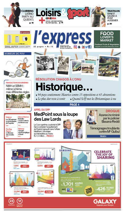 En une : Résolution Chagos à l’ONU – historique. Autres titres : MedPoint sous la loupe des Law Lords ou encore l’offensive des recalés des Pre-Reg Exams.