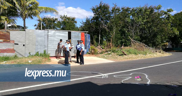 Mobilisation policière à Baie-du-Tombeau dans la matinée, lundi 26 mai. Linley Cangy, 27 ans arrêté puis libéré sous caution dans le cadre de l’enquête sur l’accident survenu samedi et qui a coûté la vie à Errol Patrick Chung Youn, 58 ans, a participé à une reconstitution, lundi 23 novembre.