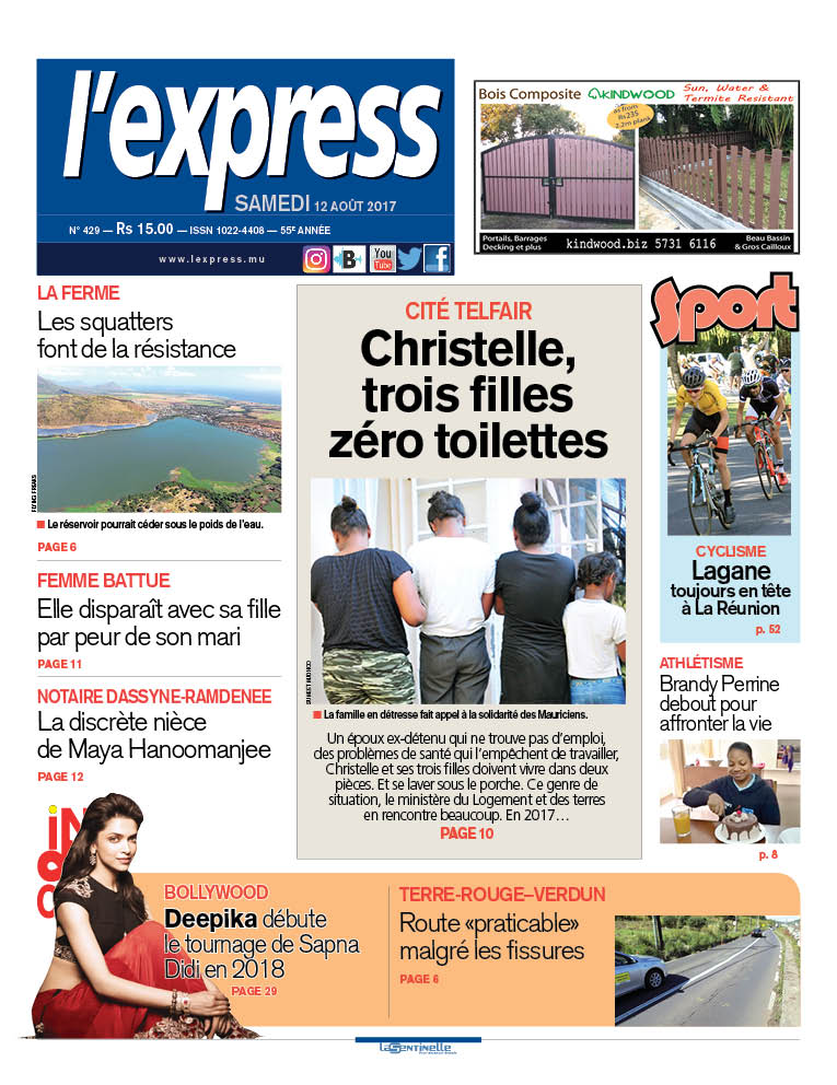 En une: une famille vit dans une maison sans toilettes ni salle de bains à cité Telfair. Autre titre: les squatters de La Ferme font de la résistance.