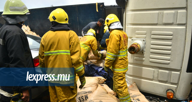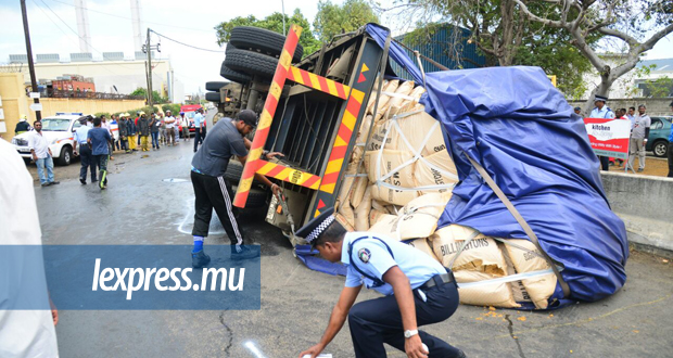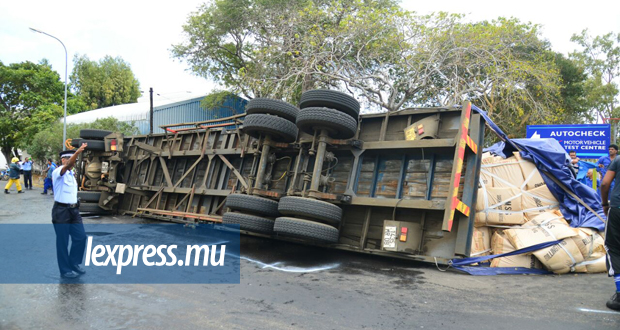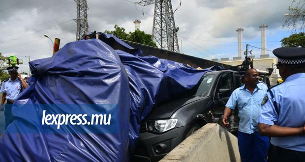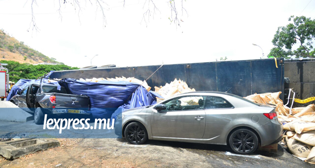Un accident a eu lieu ce mardi 26 septembre au niveau du Central Electricity Board, à Camp-Chapelon. Un camion de sucre s’est renversé sur un 4x4 noir, juste après le tournant, en sortant de l’autoroute en direction de Plaine-Lauzun. Une voiture grise ainsi qu’une moto sont également impliquées dans l’accident. Noorani Aurdally, un habitant de Pailles, témoigne de la gravité de l'accident.