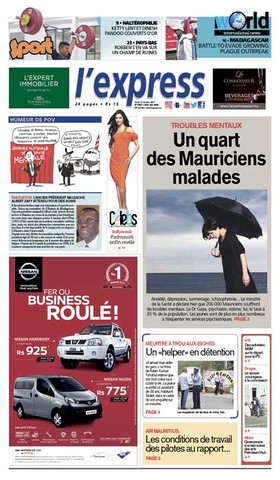 En une : un quart des Mauriciens malades. Autres titres : L’ancien président malgache Albert Zafy attendu pour des soins et un «helper» en détention suivant le meurtre à Trou-aux-Biches.
