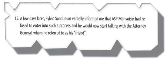 Les premiers messages de menaces que Sylvio Sundanum lui avait envoyés datent de juillet. Cet appel du 20 août n’a pas été mentionné explicitement par le dénonciateur lors de son grand déballage, mais il avait affirmé, dans le 124e paragraphe de son affidavit, qu’à partir de juillet, Sylvio Sundanum a commencé à le menacer à plusieurs reprises.