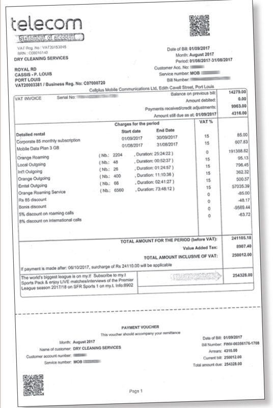 Selon nos informations, la ligne de Sylvio Sundanum était payée tous les mois par la compagnie Dry Cleaning Ltd, où il travaillait jusqu’à ce qu’il soit suspendu. Mais cette facture, la dernière avant qu’il ne soit mis à l’écart de la compagnie, a été réglée par lui-même.