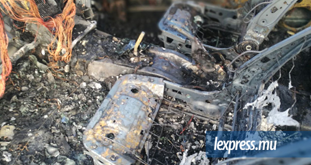 Nos photographes Beekash Roopun et Yudish Ramkhelawon ont pris plusieurs clichés de ce véhicule brûlé.