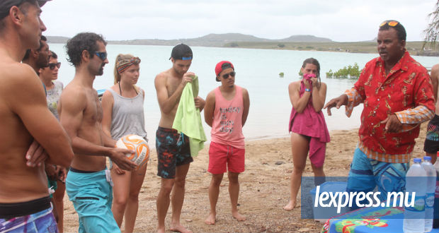 La traversée de l’île principale à l’îlot basaltique est assurée en cinq minutes par Joe Meunier, plus connu sous le nom de Joe Cool. La pirogue Paradise 2001 double les étudiants et enseignants téméraires qui ont choisi de rallier la plage de l’îlot Crabe à la nage. Les premiers à accoster sont copieusement arrosés par un gros grain de pluie. Le ciel est gris mais heureusement le mauvais temps ne va pas durer. Le soleil et la chaleur vont rapidement prendre le relais. Joe Cool, lui, rebrousse chemin pour aller chercher les derniers étudiants qui patientent à Banzilic.