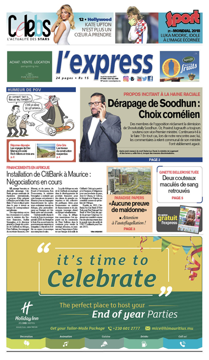 En une: dérapage de Soodhun – choix cornélien pour le Premier ministre.