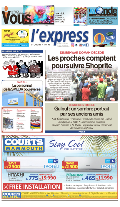 En une de l’express: Les proches de Dineshwar Domah comptent poursuivre Shoprite.