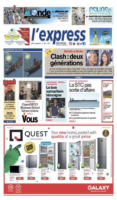 En une: Bizlall vs Diolle Clash, deux générations. Autre titre: la STC pas sortie d’affaire.