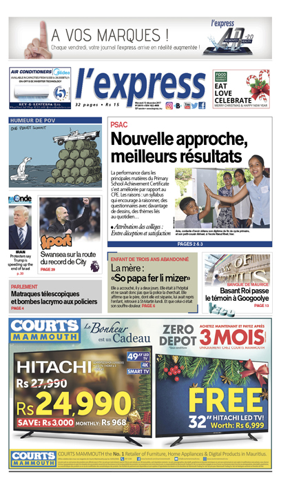 En une : PSAC : Nouvelle approche, meilleurs résultats. Autres titres : enfant de trois ans abandonné : «so papa fer li mizer» et matraques télescopiques et bombes lacrymo aux policiers.