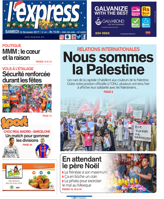 Les grands titres de l’express de ce samedi 23 décembre 2017