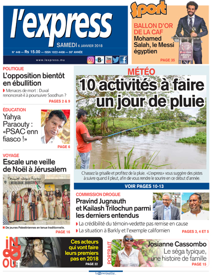 En une: 10 activités à faire un jour de pluie. Autre titre: Pravind Jugnauth et Kailash Trilochun parmi les derniers entendus à la commission drogue.