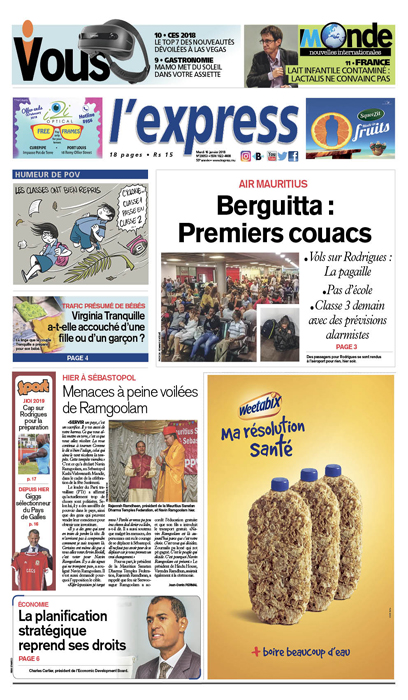En une : les premiers couacs avec l’arrivée de Berguitta. Autres titres : Menaces à peine voilées de Ramgoolam et Virginia Tranquille a-t-elle accouché d’une fille ou d’un garçon ?