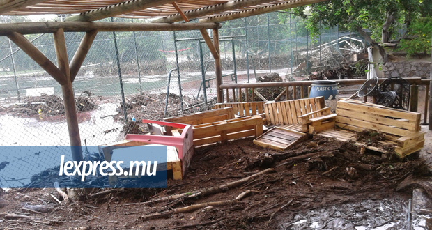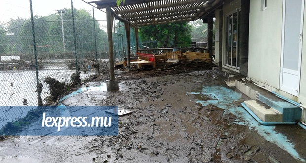 Les rafales et fortes averses associées à la forte tempête tropicale Berguitta ont sérieusement amoché le Riverland Sports Club, à l’entrée de Tamarin. La rivière qui longe le club est sortie de son lit, saccageant les installations extérieures (restaurant, piscine, courts de tennis, terrain de foot/rugby...).