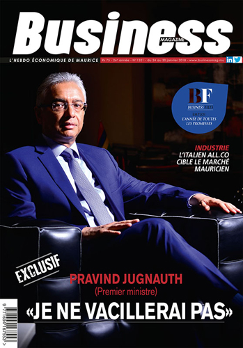 Business Magazine propose en couverture cette semaine un entretien exclusif du chef du gouvernement, qui aborde sa première année à la tête du pays. Pravind Jugnauth se dévoile, présentant son style de ‘primeministership’ comme une combinaison de simplicité, d’humilité et de conviction. Il se décrit comme quelqu’un de très terre à terre mais déterminé, avec des valeurs et des principes qui le motivent. «C’est justement ce qui me pousse à toujours donner le meilleur de moi-même pour le bien-être de tous. L’important pour moi, c’est de me concentrer sur mes objectifs. Mon gouvernement et moi-même avons une mission à remplir et nous entendons la mener à bien. Mon souhait, c’est de transformer le pays et rendre la nation mauricienne encore plus forte et encore plus moderne, dans le cadre d’une île Maurice prospère, moderne et juste et au sein de laquelle chaque citoyen sera fier d’être Mauricien tout en bénéficiant des fruits de la réussite de son pays».