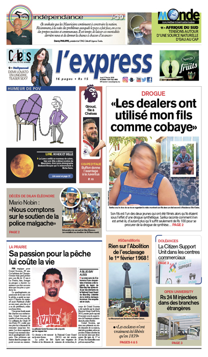En une, Sarika, la mère d’un des deux jeunes qui ont été filmés alors qu’ils étaient sous l’effet d’une drogue synthétique, se confie. Autre titre : la Citizen Support Unit dans les centres commerciaux.