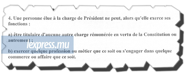 Milan Meetarbhan, juriste, a accepté de répondre à nos questions. Il fait ressortir qu’il faudrait voir l’esprit de cette disposition de la Constitution et de se poser les questions suivantes avant tout : «était-ce une forme de rémunération déguisée ou est-ce qu’un président peut avoir un comportement qui compromet l’image du pays et de la Constitution ?» Il poursuit en mettant l’accent sur le fait que si un président devient l’allié d’un investisseur et profite donc des avantages de cette relation, cela peut être préjudiciable à l’image de la présidence et du pays.