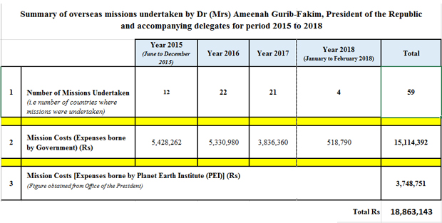 Toujours selon les données officielles en notre possession, Planet Earth Institute (PEI) a financé des missions de la chef de l’État à hauteur de Rs 3,7 millions. Selon les auteurs des documents, l’argent provient de ce qu’ils appellent un Deposit Account.