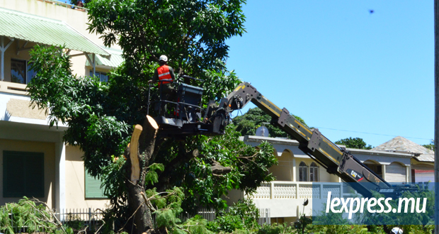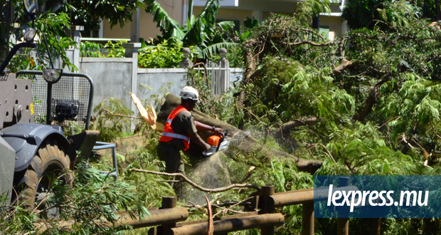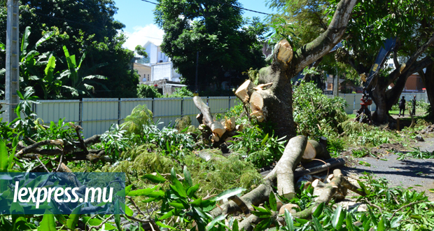Sur les lieux, la scène est désolante : des branches et des feuilles jonchent la promenade Roland Armand. Un peu plus loin, un grand arbre attend d’être abattu. Il porte toujours l’inscription «mo ti to lonbraz zour soley»… Les oiseaux ne viendront plus s’y poser ou y construire leur nid.