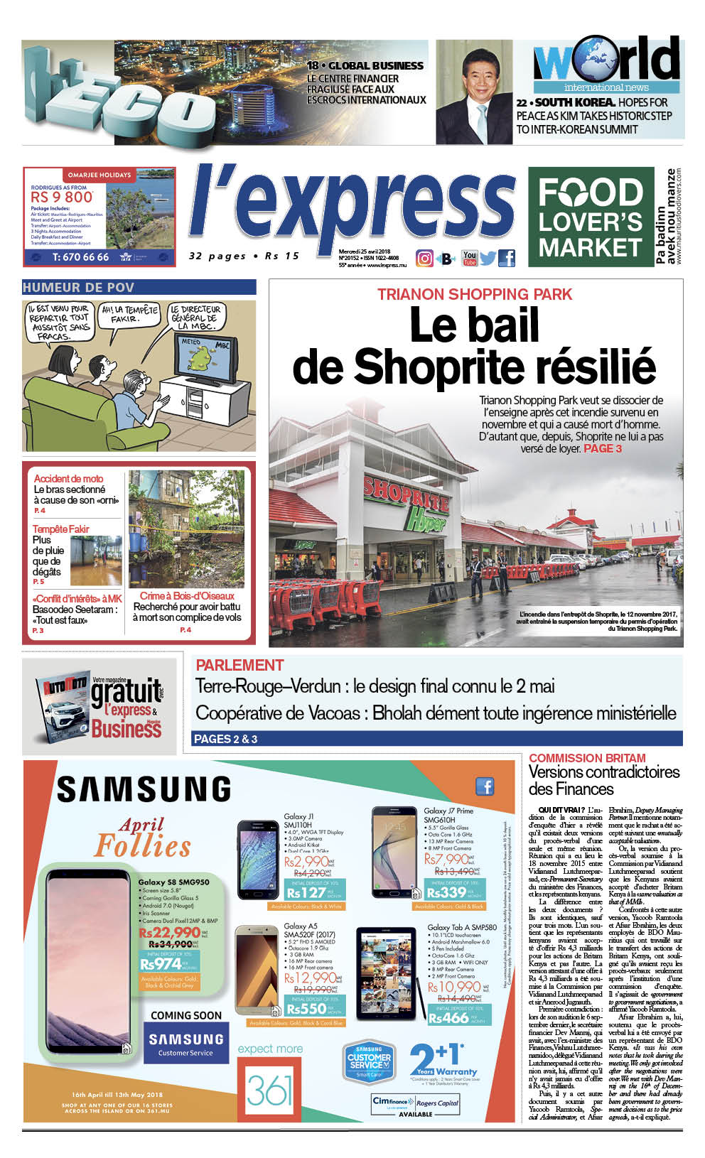 À la une: le bail de Shoprite résilié. Autre titre, commission Britam: versions contradictoires des Finances.