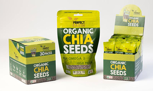 Les graines de chia de la marque Red Mill (Etats-Unis) sont disponibles en logements de 340 et de 453 grammes, tandis que celles de la marque Perfect Earth (Thaïlande) sont disponibles en paquets de 250 grammes mais également en sticks de 25 grammes dans les magasins Mantra.