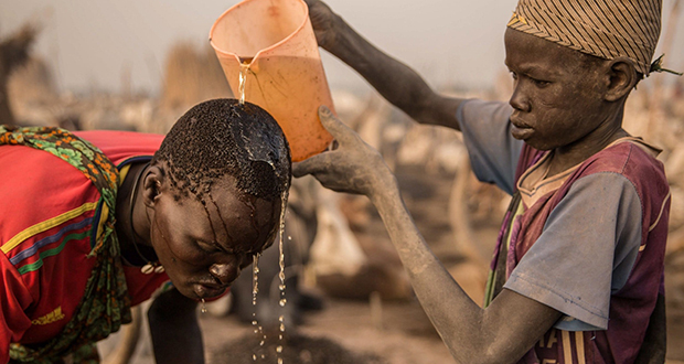 Les Dinka se lavent le visage et les yeux avec de l’urine de vache. Cette urine sert aussi de teinture naturelle pour les cheveux, qui deviennent orange.